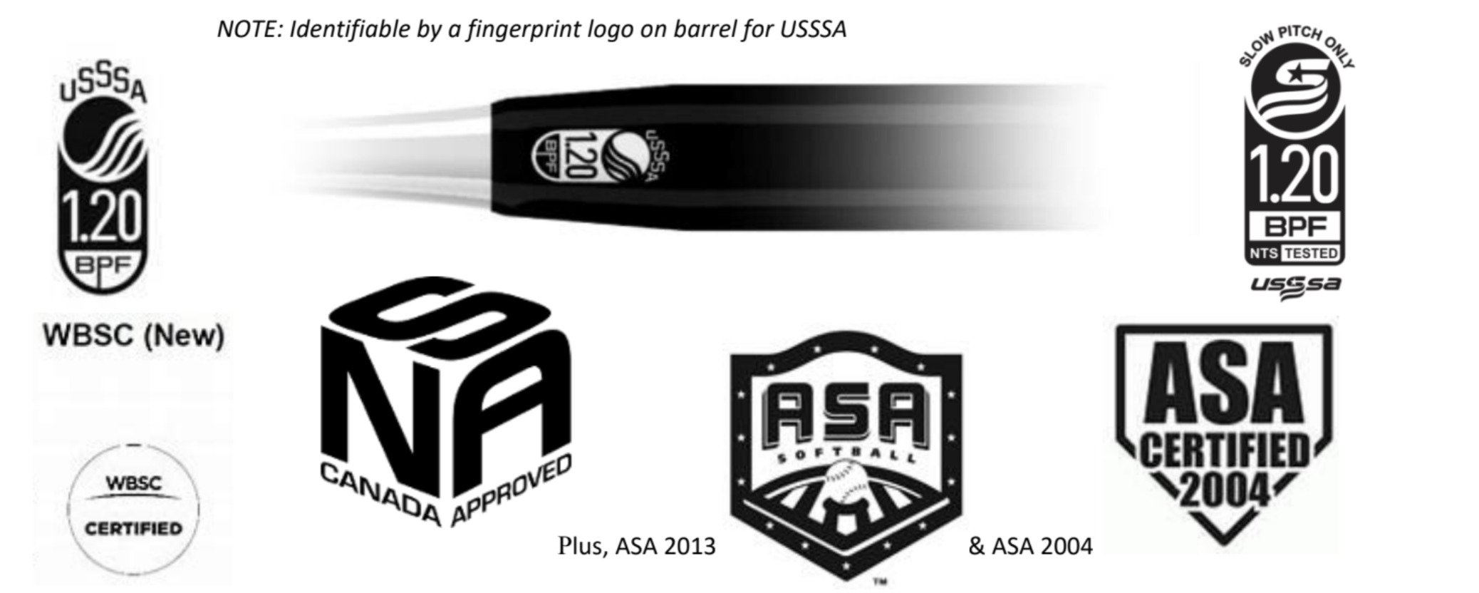 3.3 Bats must be one piece construction, multi-piece permanently assembled or two piece interchangeable construction. Bats must be certified by NSA, USSSA or ASA. Fingerprint Logo must be present.
